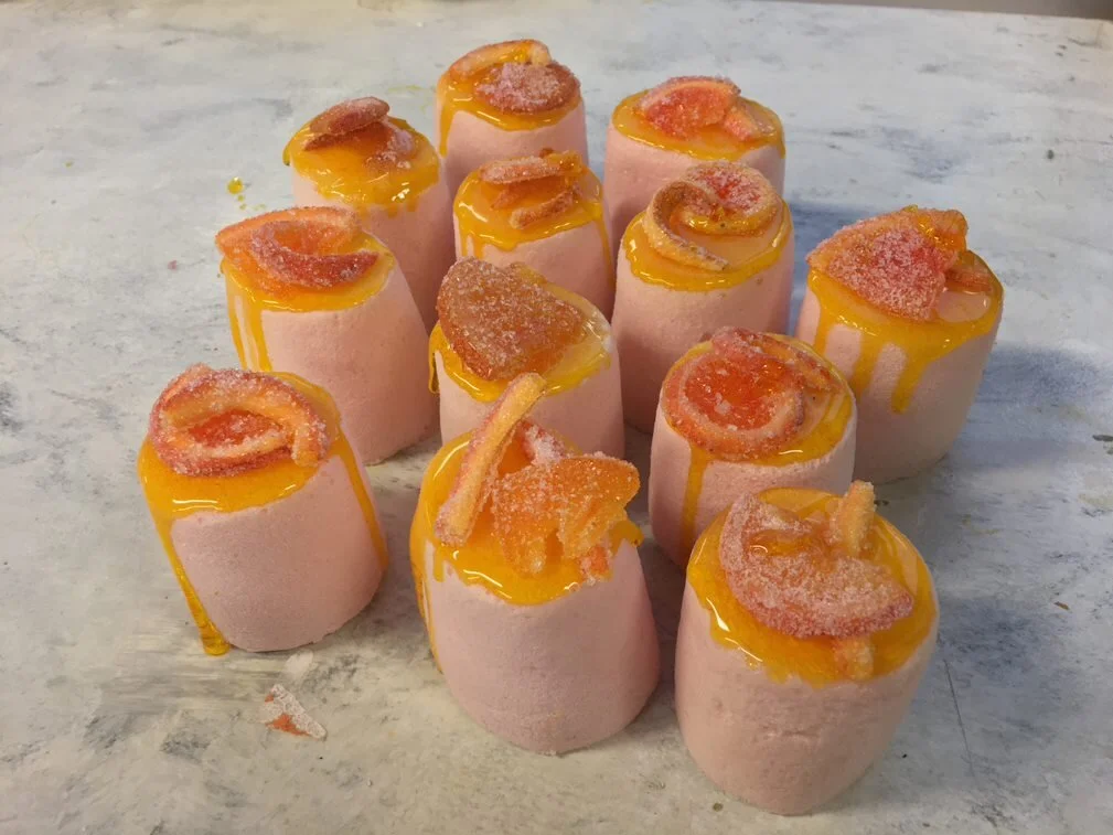A TIME LAPSE OF THE MAKING OF THE PUDDINGS, FOCUSING ON THE RESIN CANDIED ORANGE PIECES AND FINAL ASSEMBLY, WITH:SCULPTINGMOULD MAKINGINSET RESIN CASTINGPAINTINGGEL WAX